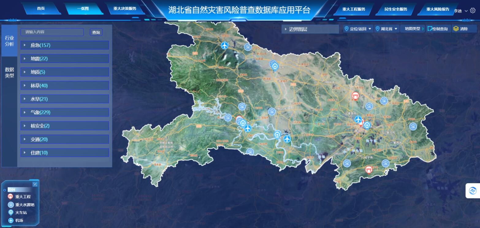 4)建设自然灾害风险普查一张图,基于普查成果数据库对风险数据的有效管理,面向常态普查数据运营需求,实现对普查数据进行时空多维度、多粒度的展示,挖掘普查数据价值。